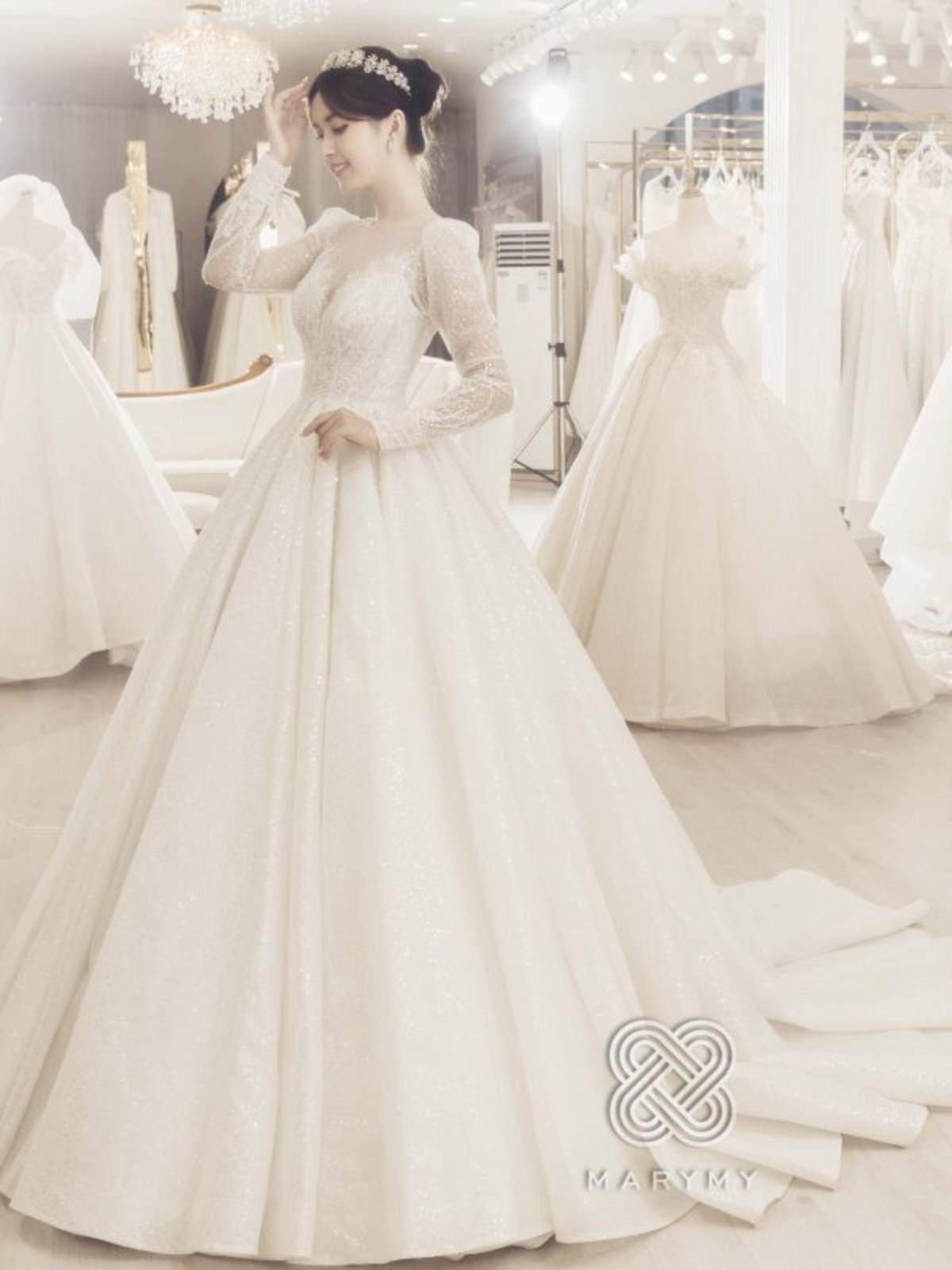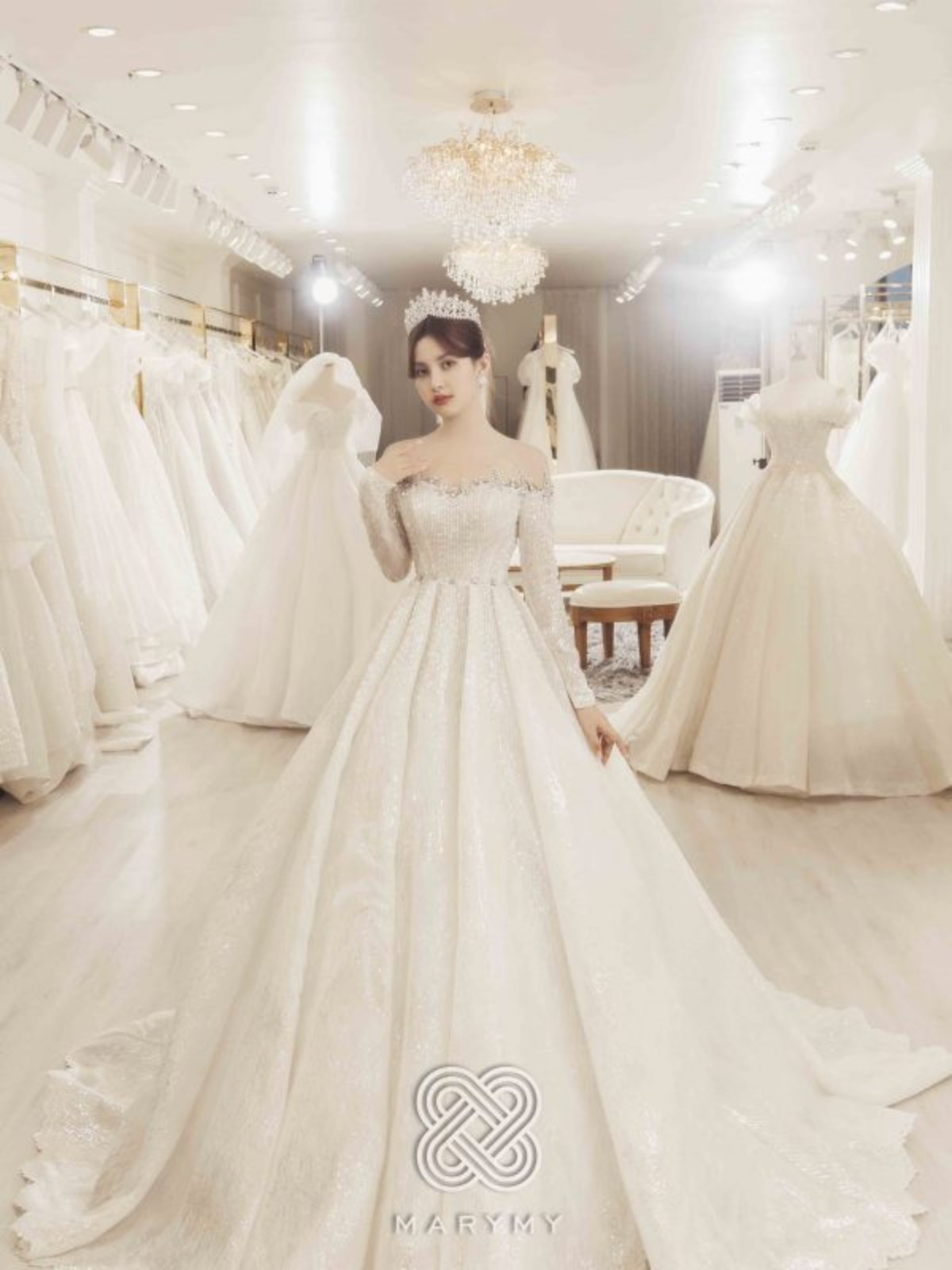 Chiếc váy cưới xòe trễ vai quyến rũ